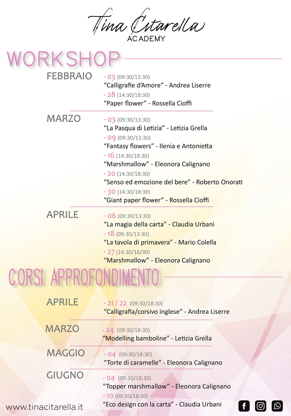 Per maggiori informazioni e dettagli sui workshop e per ricevere il modulo di iscrizione, compilare il form di seguito indicando nel primo campo il nome del workshop al quale sei interessato.